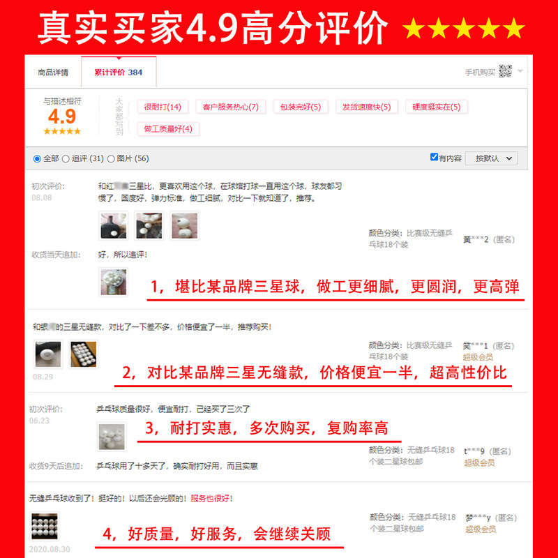 尤迪曼正品乒乓球无缝新材料A40+弹力耐打赛顶专业比赛2星兵乓球 - yodiman旗舰店