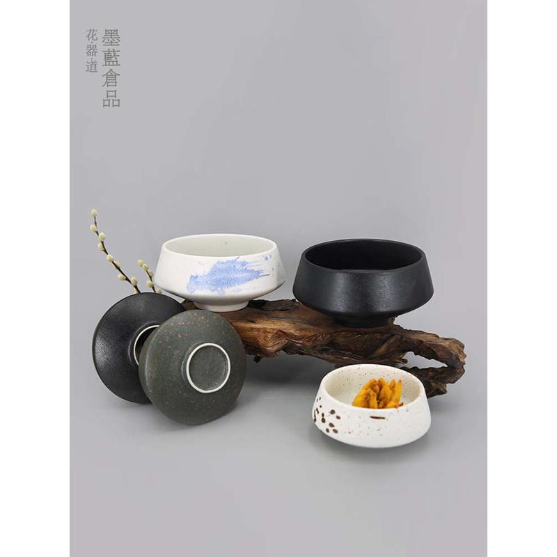碗型复古墨黑花器禅意陶瓷中式插花器皿日式花道花盘多肉仿古花盆 - d[s396755547]