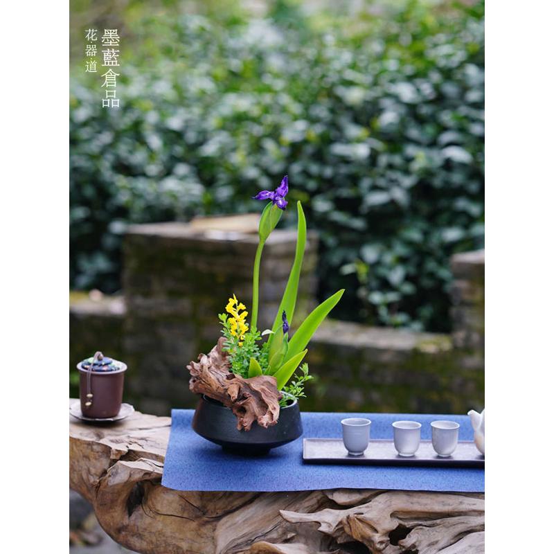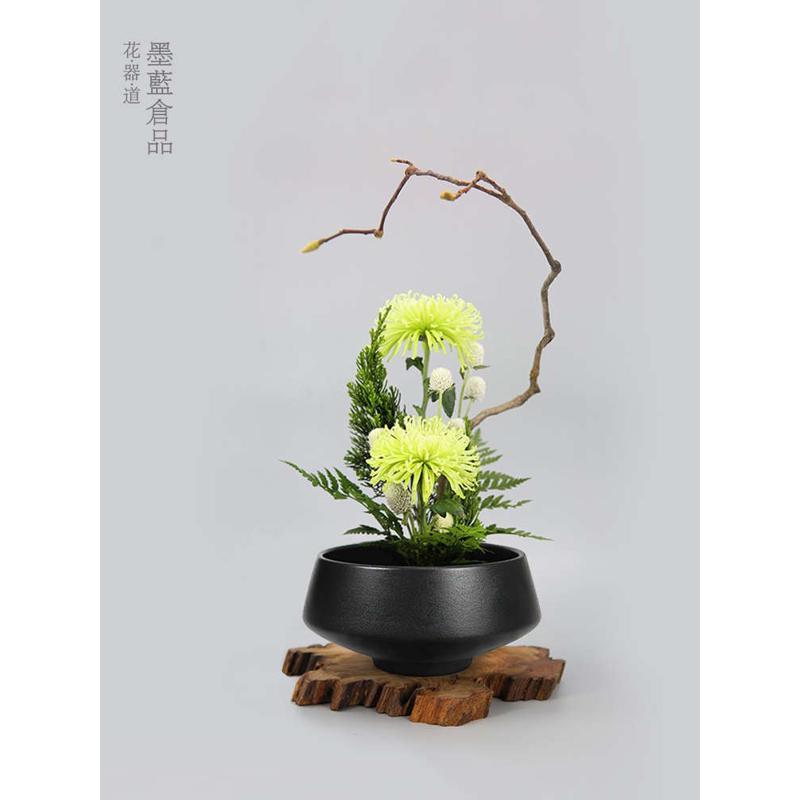 您的位置:他他商城  >   >  碗型复古墨黑花器禅意陶瓷中式插花器皿日式花道花盘多肉仿古花盆