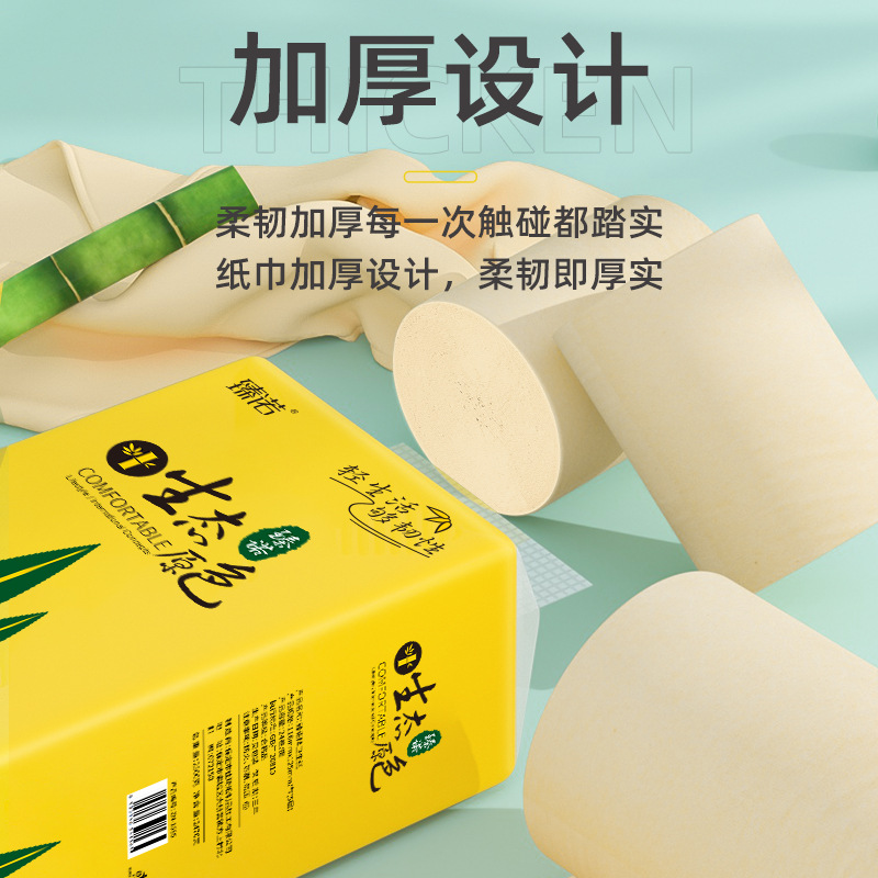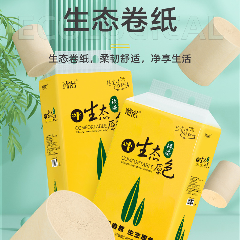 臻诺卷5斤24卷纸家用纸巾干湿两用擦手纸卫生纸竹浆本色厕纸大卷 - 惠美家居用品生活馆