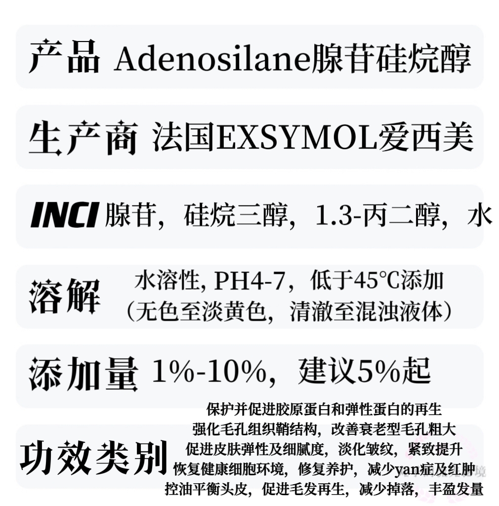 法国爱西美腺苷硅烷醇 修复促胶原缩毛孔紧致 促发量养护毛囊原料 - 丸子的流光秘境