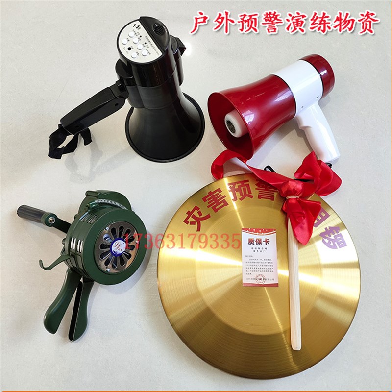 利景手摇报警器铜锣2kg防汛锣SY100扬声器便携式警报器印字铜锣 - 柚橙冬甜商城