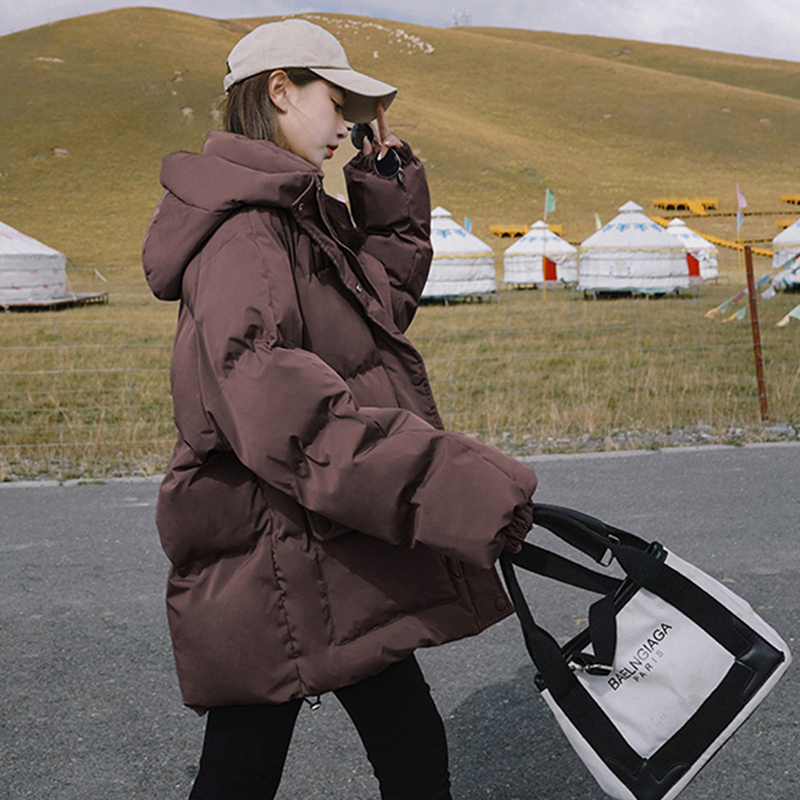 秋冬小个子中长款连帽羽绒棉服女宽松BF风加厚棉衣外套保暖面包服 - 密系旗舰店