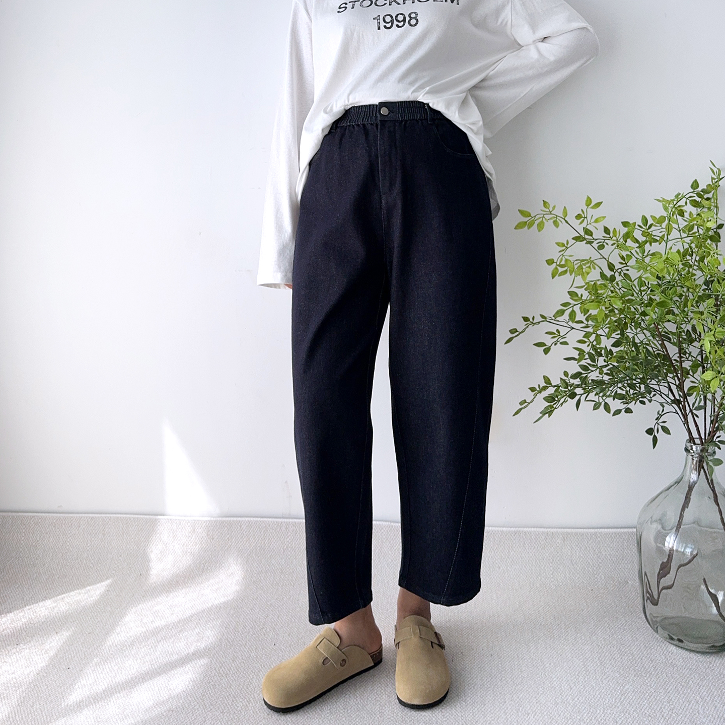 大爽家大码女装加绒哈伦牛仔直筒裤女冬季高腰女裤萝卜裤胖mm裤子 - 大塽家 大码女装