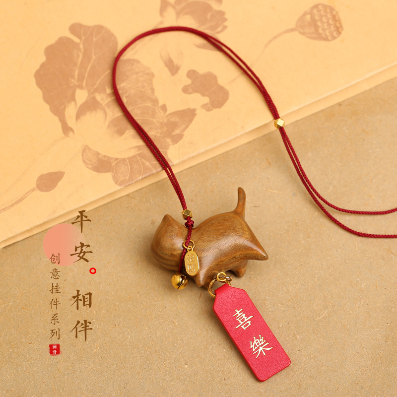 木质小挂件汽车挂件黑檀木雕刻猫咪汽车挂件手把件创意家居饰品绿 - 秋高恒信商城