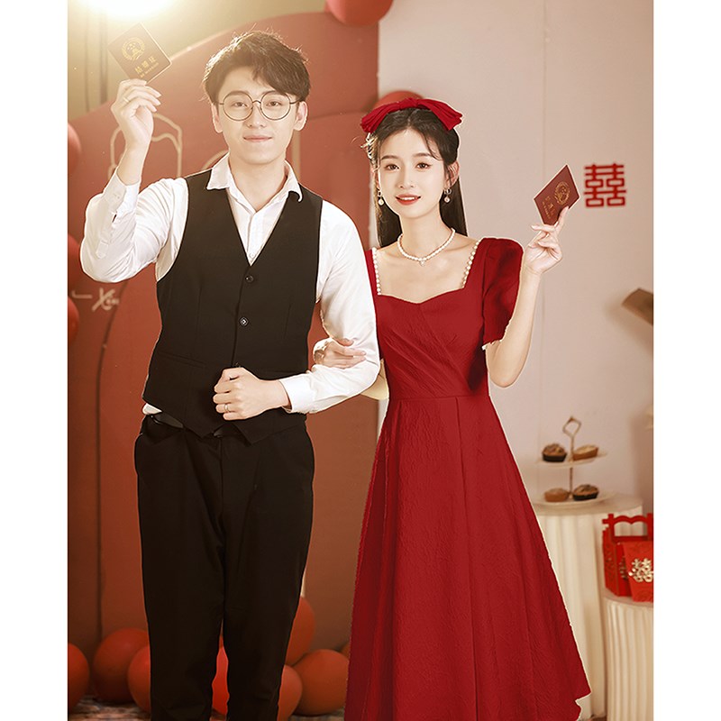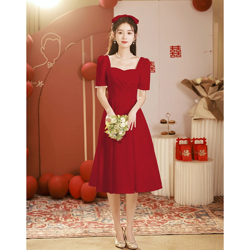 速发敬酒服新娘酒可色平时红穿订简礼服婚约夏结婚当天便装回门连