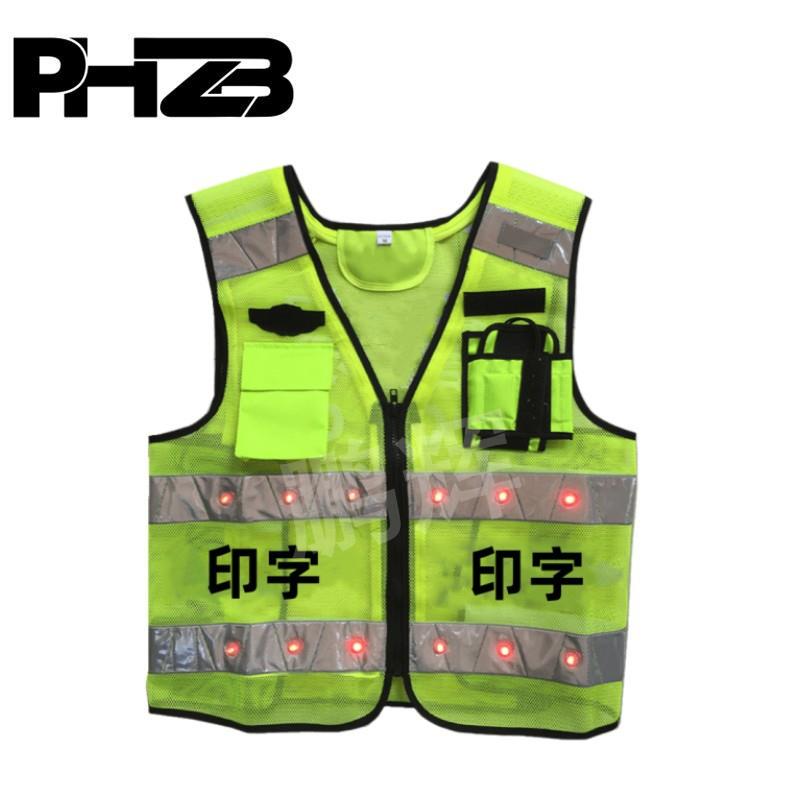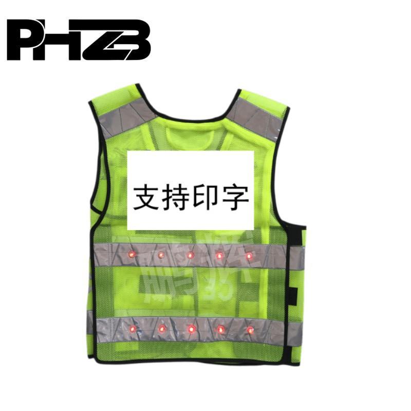 LED带灯反光背心三档红色爆闪警示马甲夜间发光反光衣骑行防护服