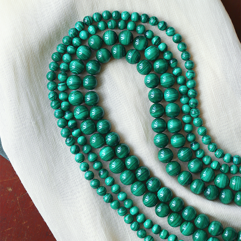 天然孔雀石散珠子隔珠 5A级孔雀石圆珠子单珠佛珠配珠串珠 - 怡庆楼朱砂水晶批发