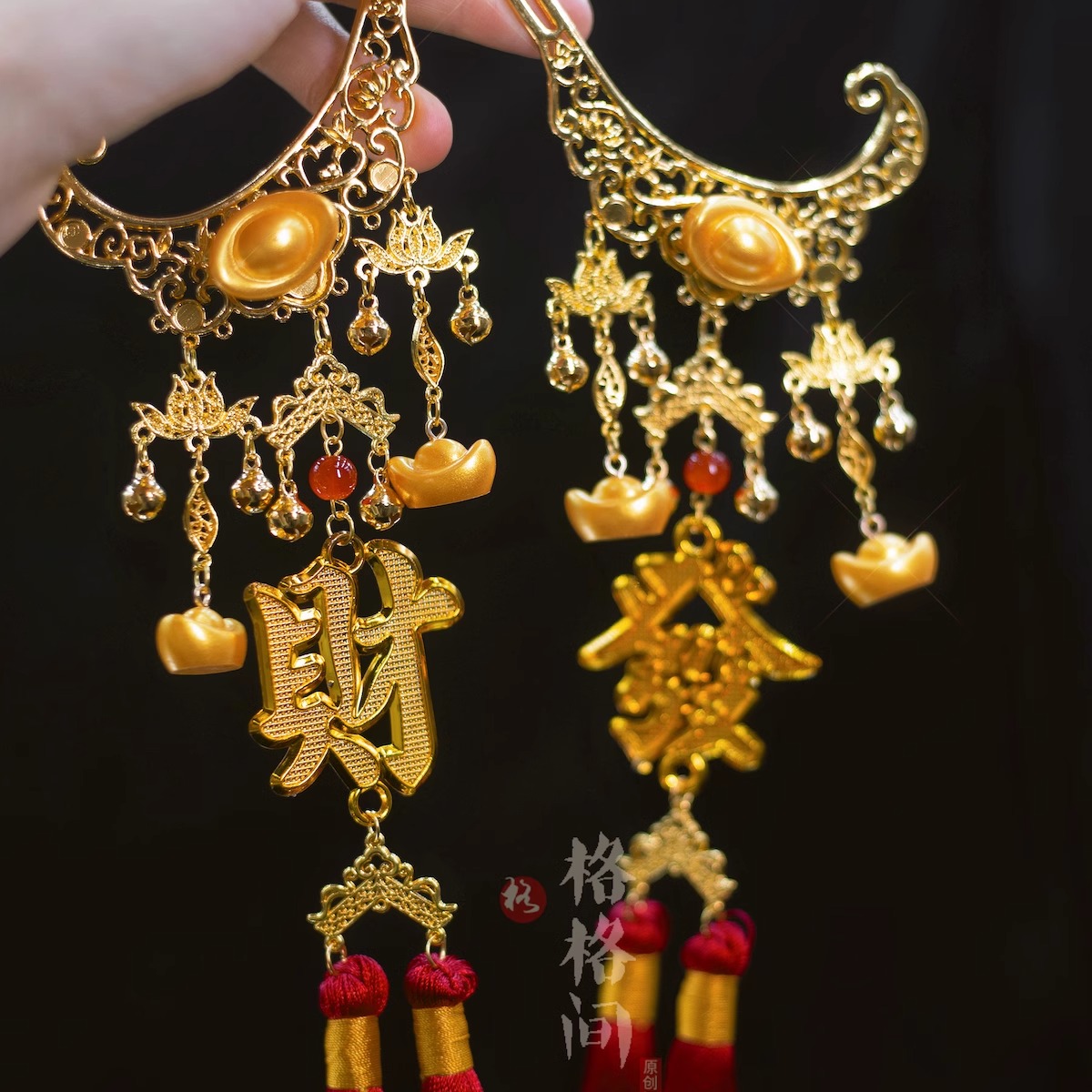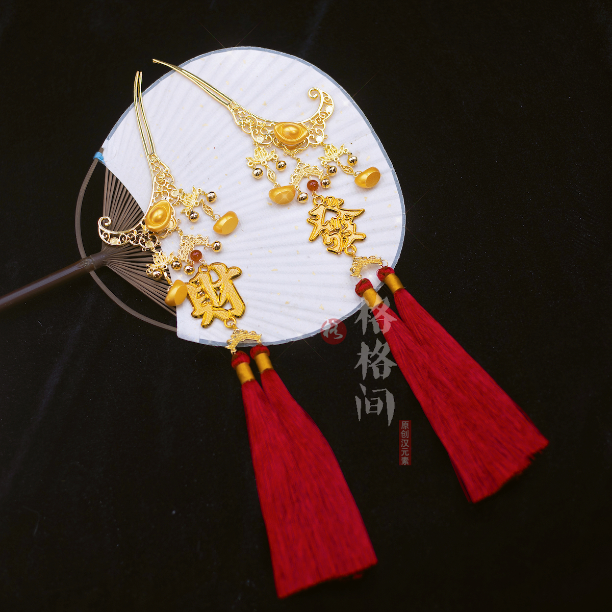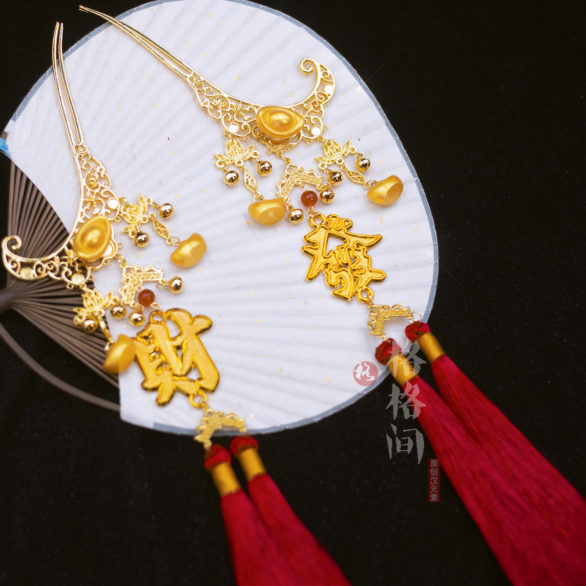 格格间原创【发大财】秋冬铜钱币发簪新年财神可爱喜庆发饰配饰 - 格格间 原创汉元素
