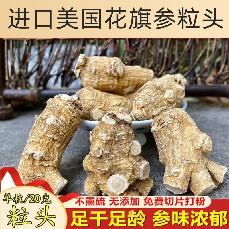 花旗参官方旗舰店正品美国进口人参粒头切片打粉加拿大西洋参整枝
