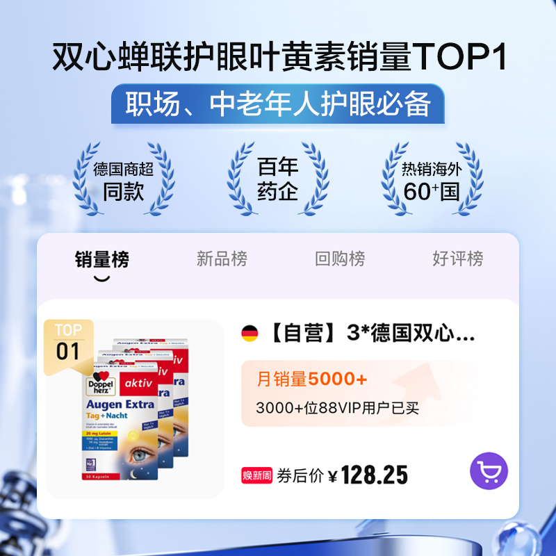德国双心蓝莓叶黄素胶囊*3减少眼干涩成人花青素官方旗舰店进口护 - 阿里健康大药房海外店