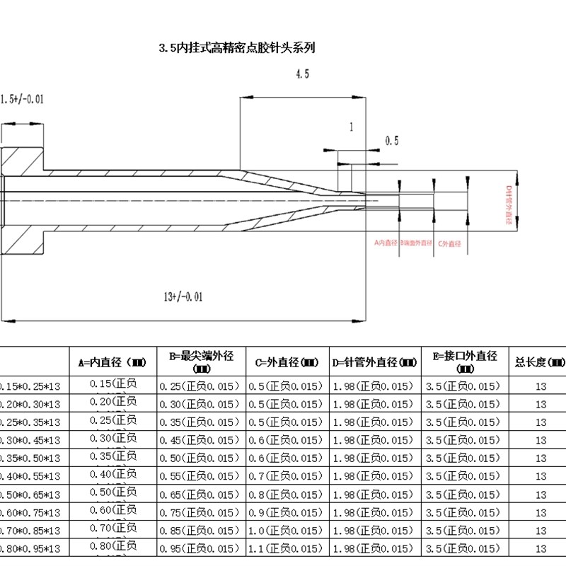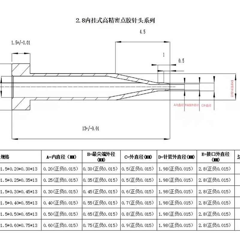 挂式点胶精密针头点粉针头内v置式出胶嘴 万禾 长林高速点胶机通