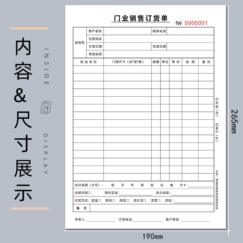 您的位置:他他商城  >   >  门业销售订货单木门收据家具建材橱柜全H屋定制订购销货清单可定