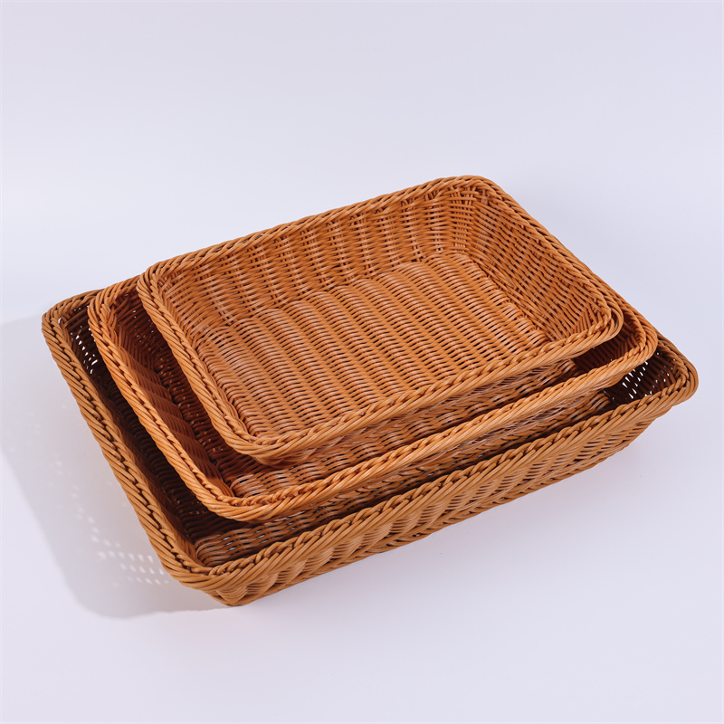 长方篮仿藤编水果篮面包筐超市果蔬展示篮零食收纳框方形塑料筐 - 怡煦酒店用品