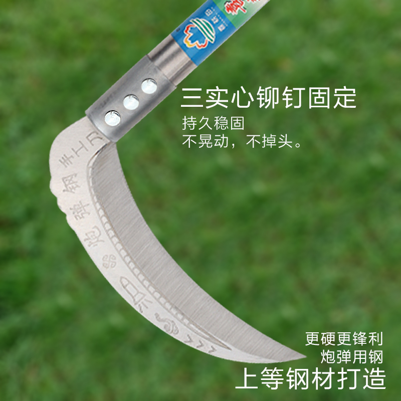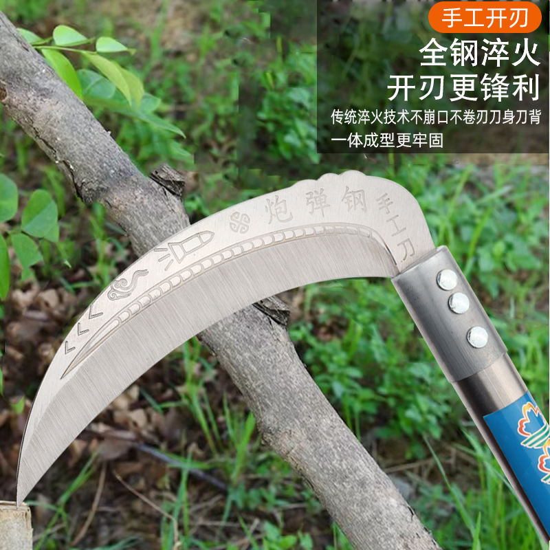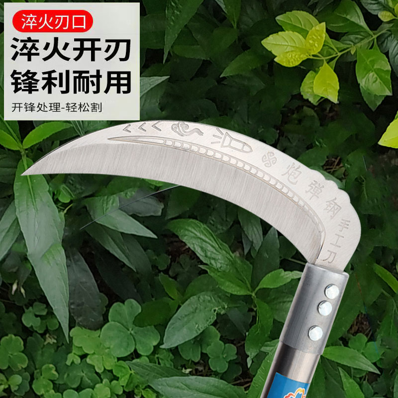 不锈钢柄镰刀割草刀镰刀农用户外绿化收割麦子玉米水稻全钢收割刀 - 喜耕田五金商贸
