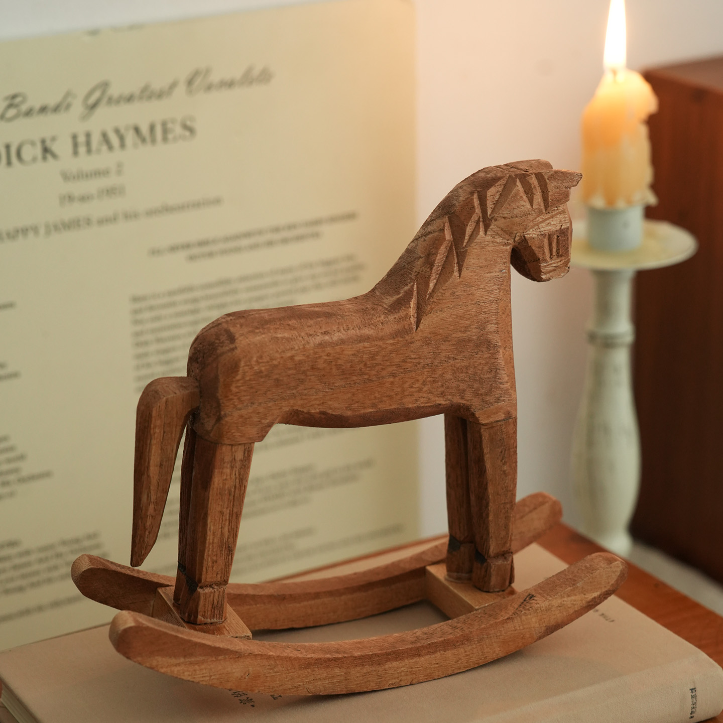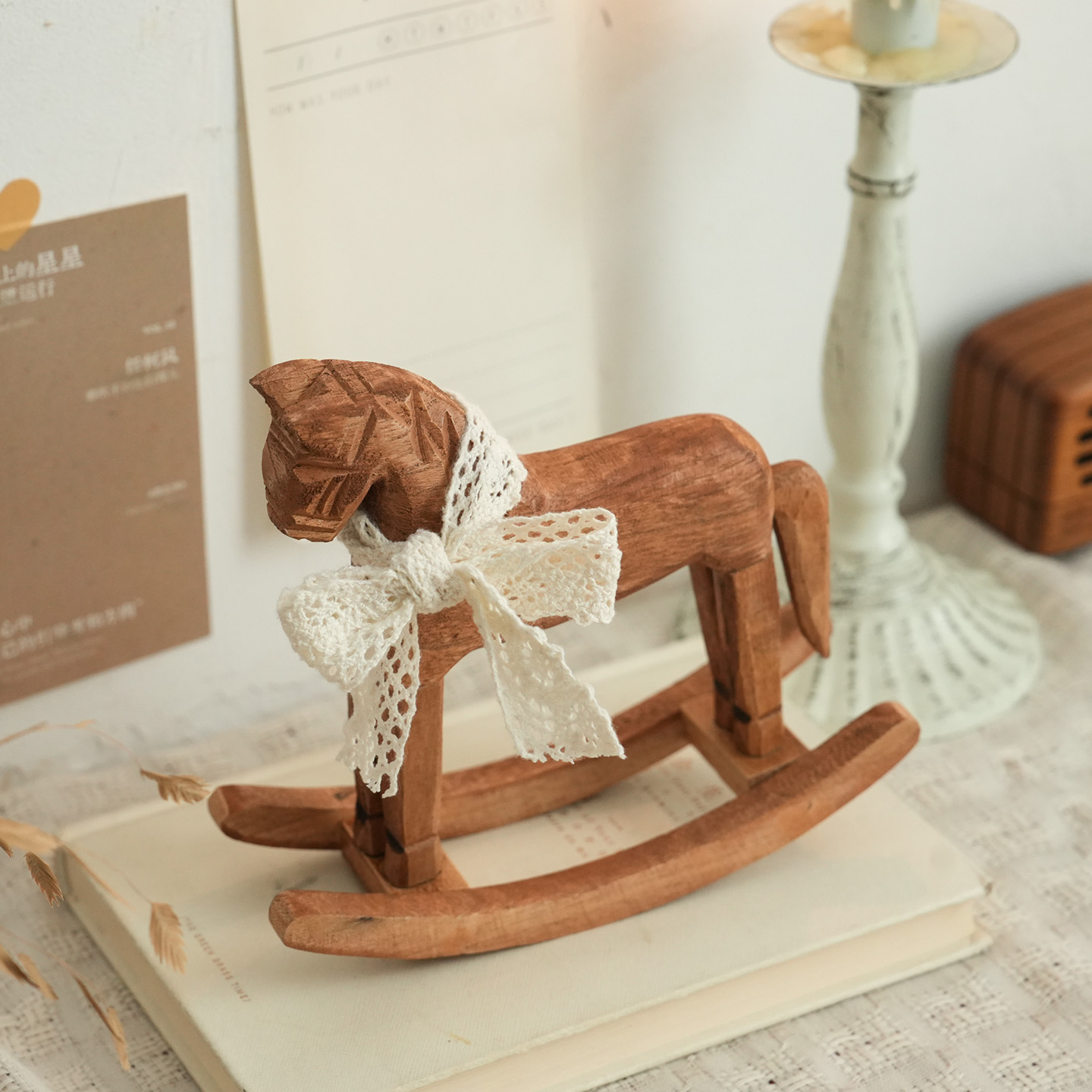 可爱日子 复古怀旧木雕摇摇马摆件卧室玄关实木桌面装饰拍照道具 - 可爱日子 温柔杂货店