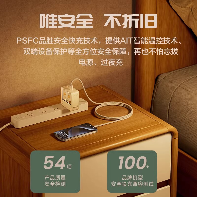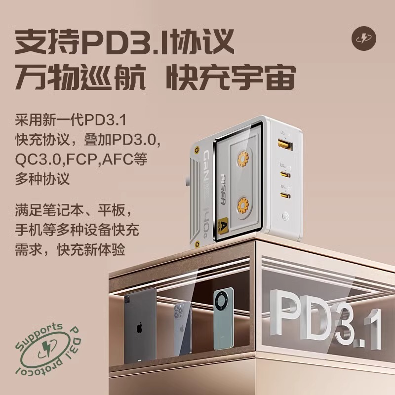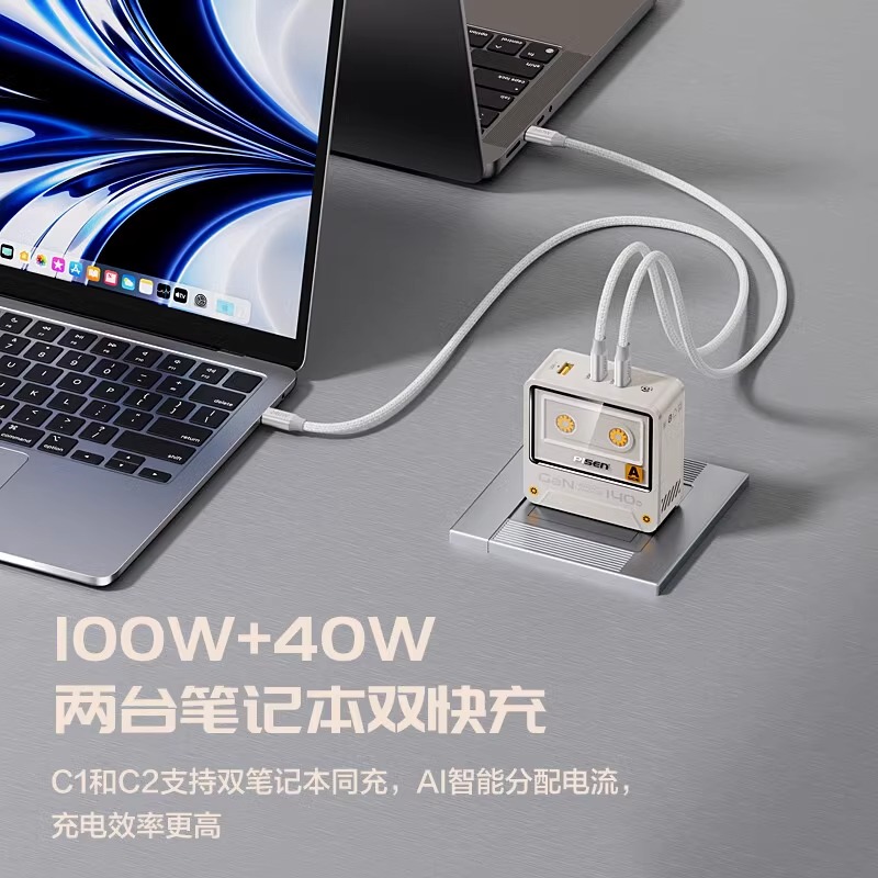 品胜140W氮化镓复古充电器type-c多口PD65W快充USB插头100W适用笔记本电脑联想华为iPhone15苹果16三星手机 - 浩莱迪数码专营店