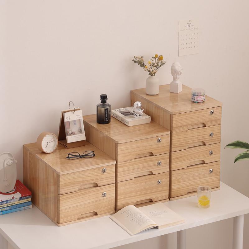 带锁实木收纳整理盒抽屉式多层办公室桌面文件柜A4桌上储物小柜子 - 辛源家具