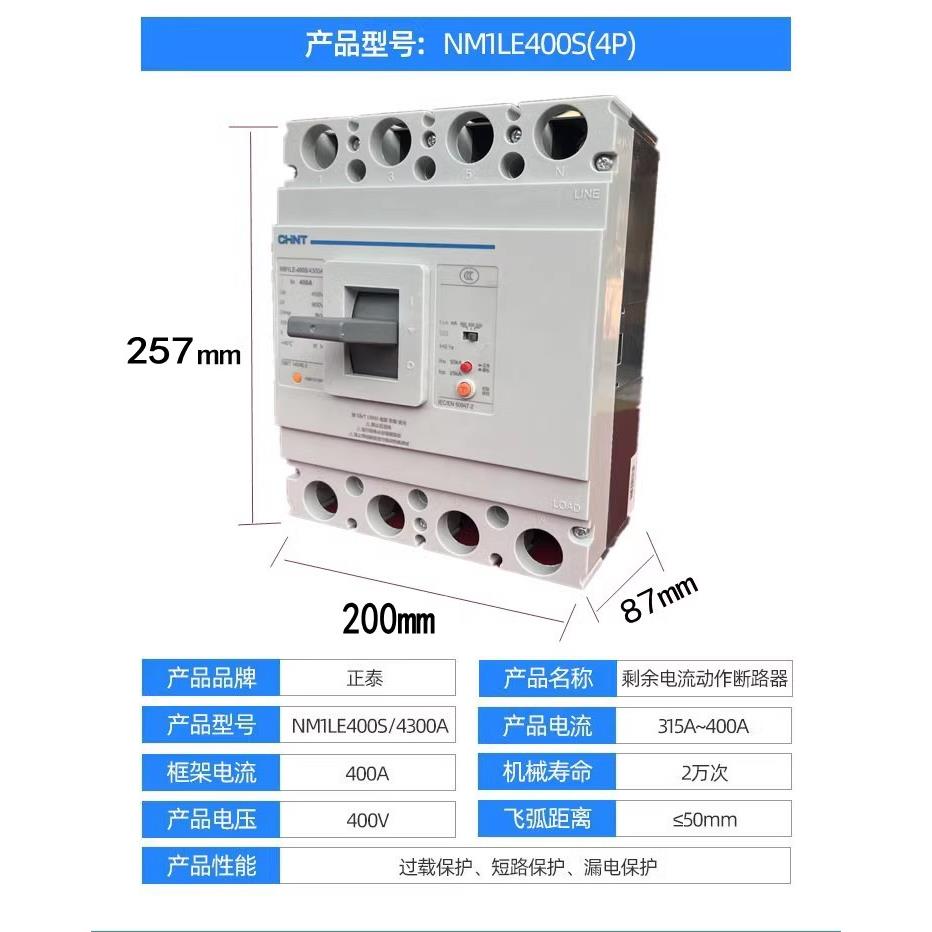 正泰NM1LE-125S/4300A 250S400S630A 100A160A250A400A漏电断路器 - 泰博卓旗舰店