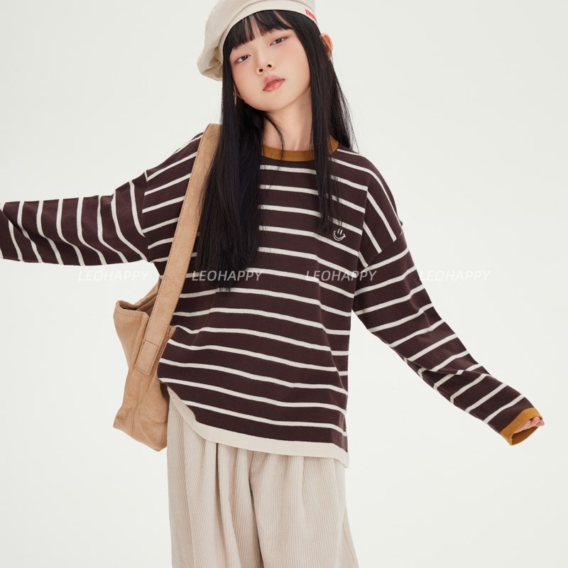 LEOHAPPY女童毛衣春秋款儿童针织衫包芯纱条纹衫中大童毛织上衣 - 百越严选店