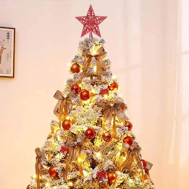 Gold Glitter Iron Red Sliver Stars Christmas Tree Topper Mer - 脑子清楚才对43