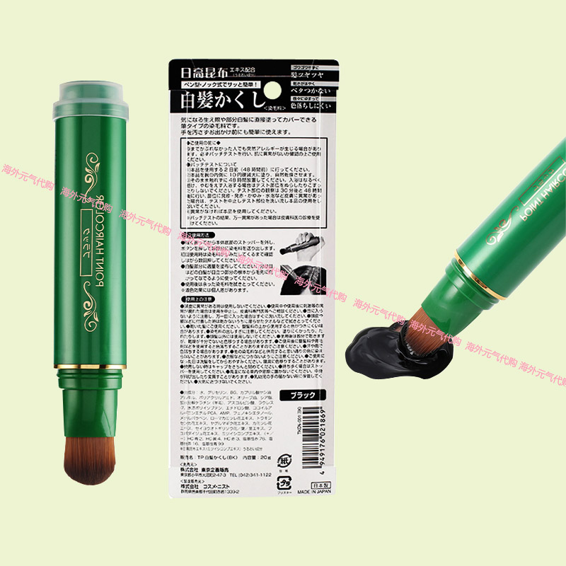 日本原装日高昆布一次性纯植物天然染发笔染发膏剂遮盖白发补染棒 - 海外元气代购