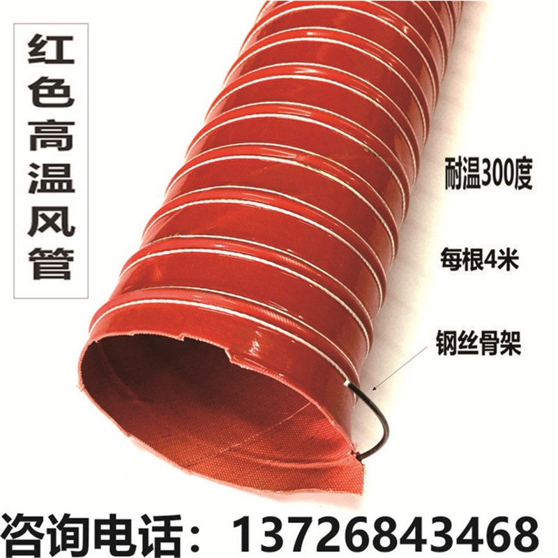 硅胶矽胶风管拉伸钢丝软管红色高压耐高温油烟机通风出风管150mm - 酒仲仙商贸