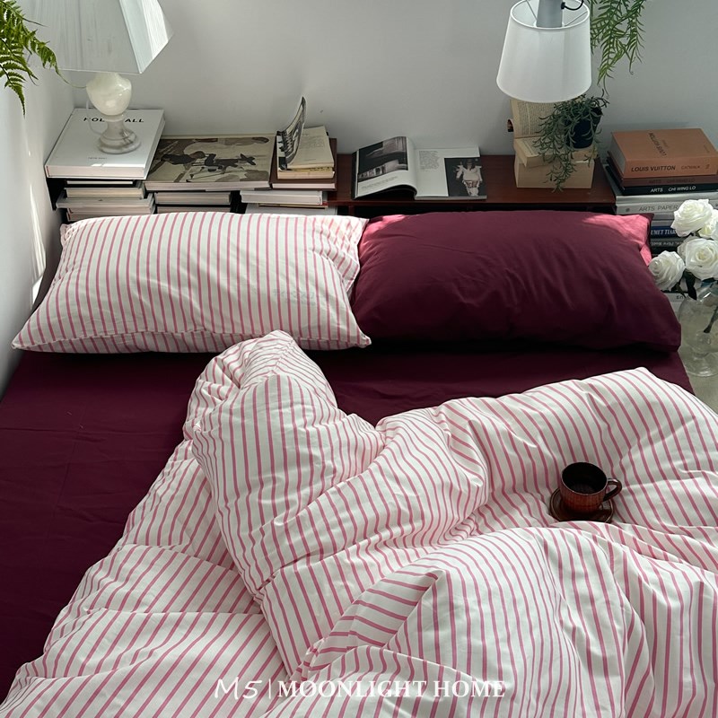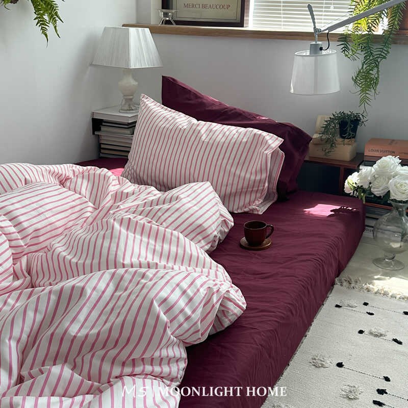 硬糖莓莓粉色少女纯棉床上四件套全棉床单被套被单床笠床品三件套 - 媛黛企业店