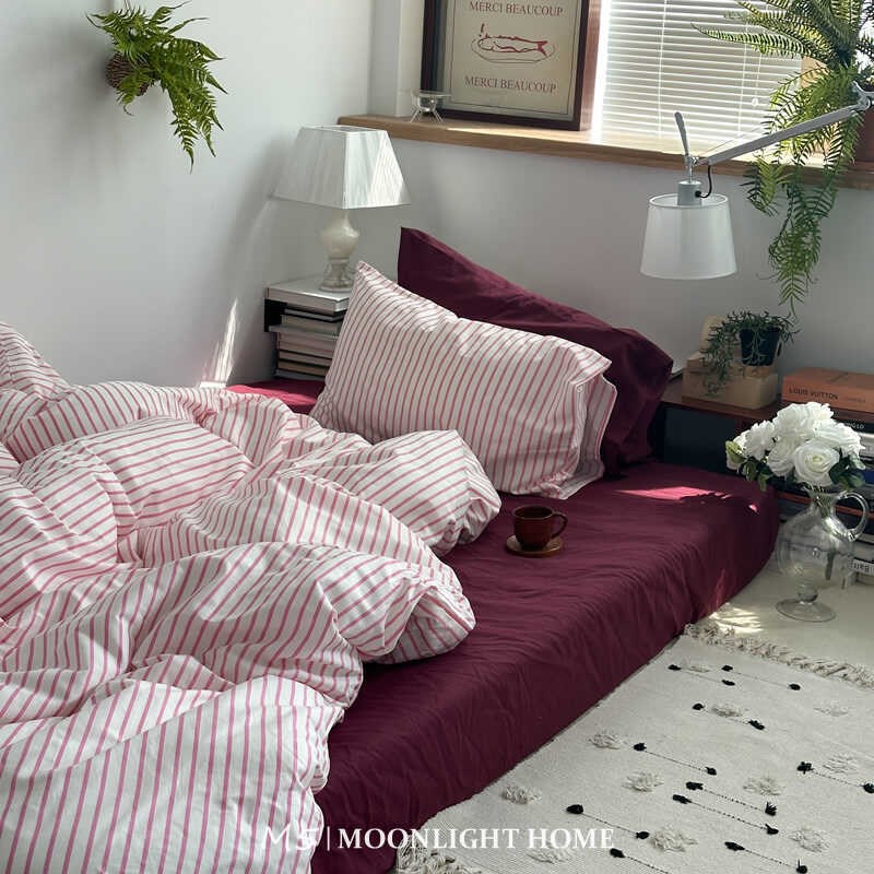 硬糖莓莓粉色少女纯棉床上四件套全棉床单被套被单床笠床品三件套