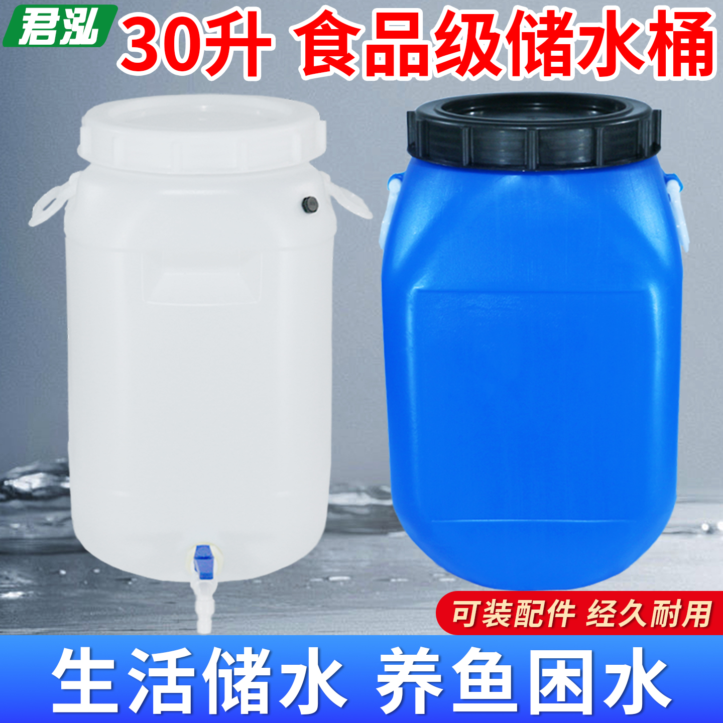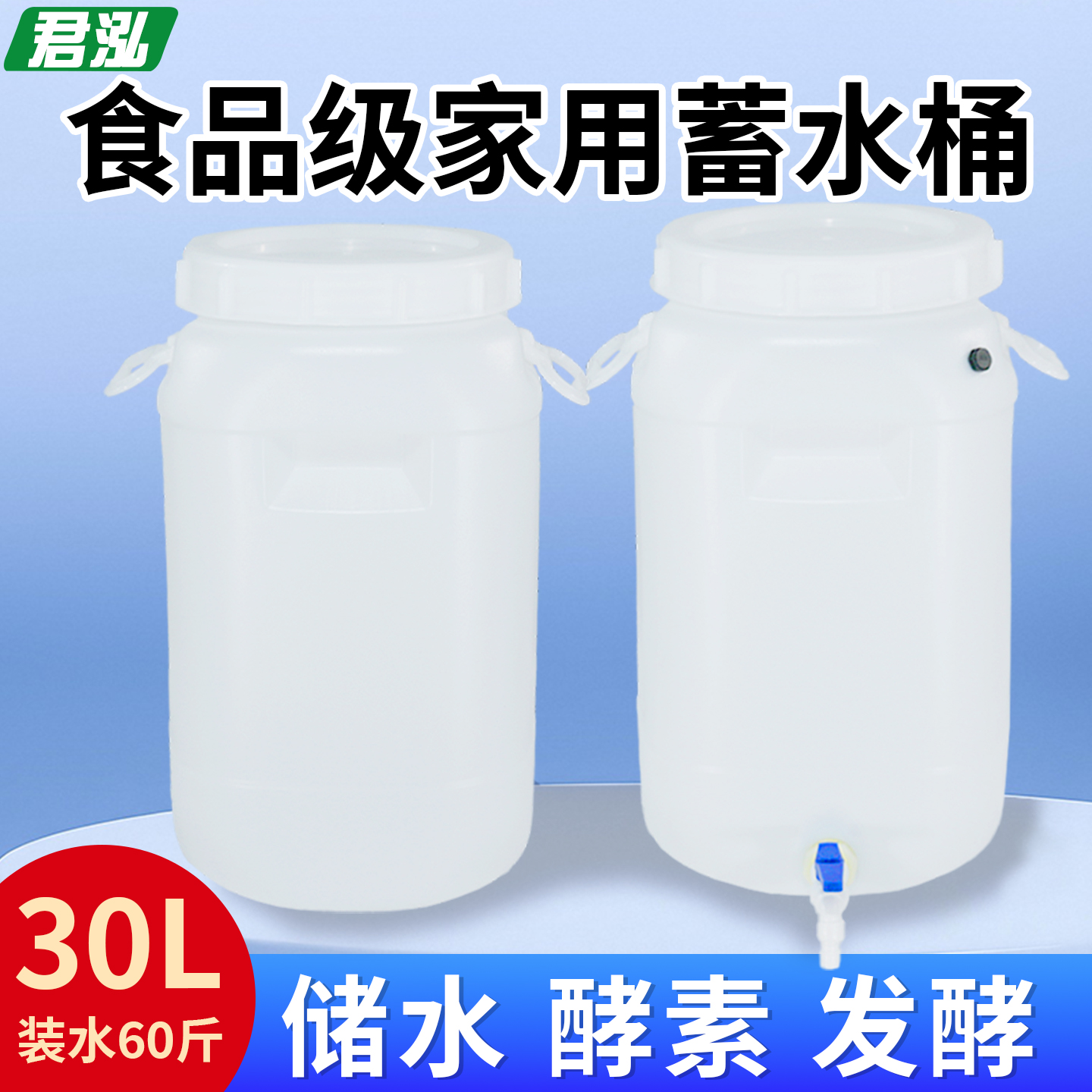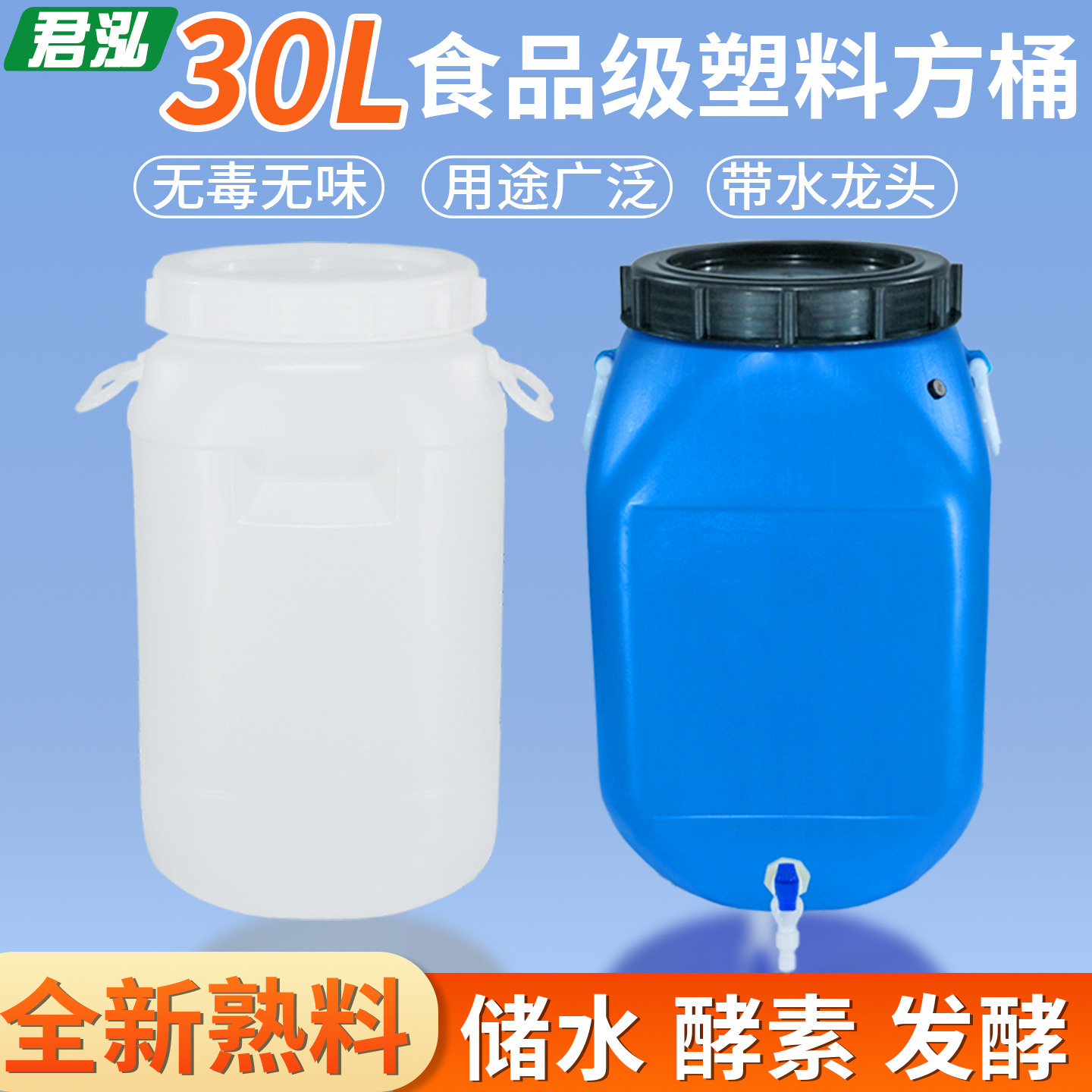 食品级塑料方桶30升60斤储水桶带水龙头家用堆肥发酵桶蜂蜜桶带盖 - 临沂君泓塑料制品厂