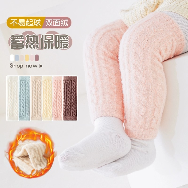 婴儿护膝宝宝爬行护腿秋冬换尿不湿神器加厚长筒新生儿保暖无骨袜 - 万物生百货优选