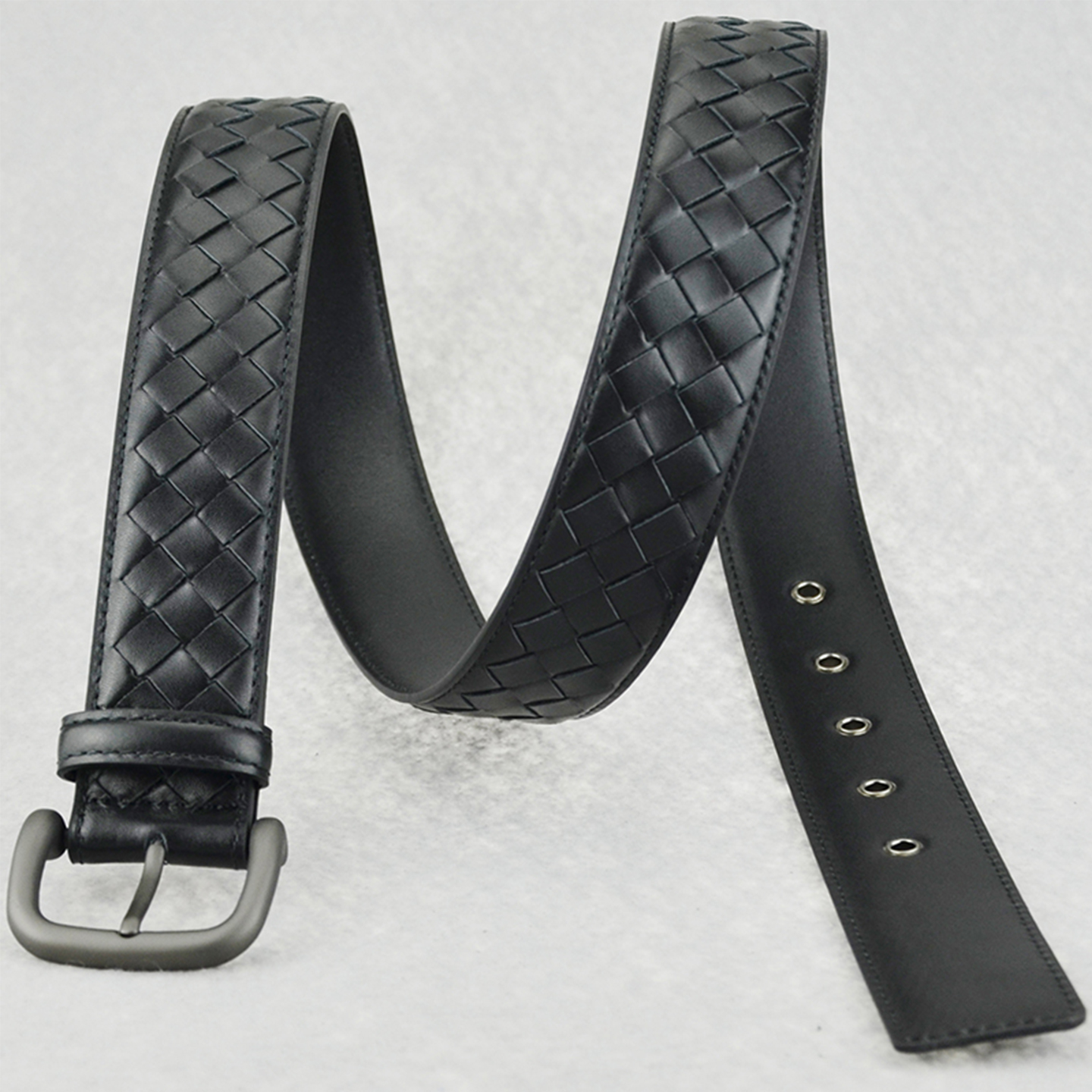 纯手工头层牛皮编织皮带男真皮腰带女针扣休闲百搭牛仔裤皮带bv10 - PLULUSA普路露莎
