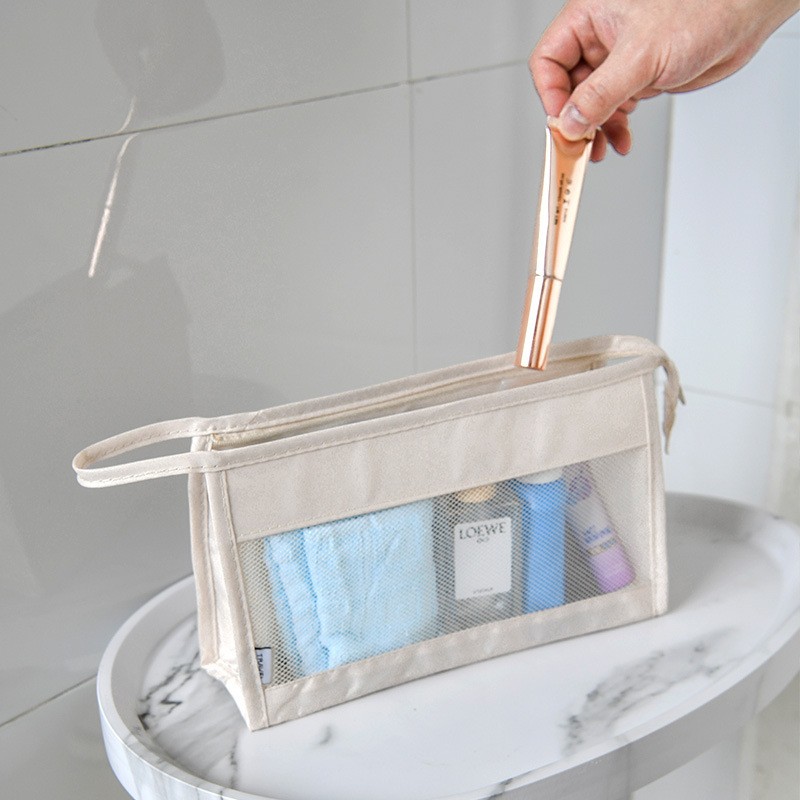 旅行化妆包女简约大容量化妆品收纳袋手提出差可携式洗漱包网格透 - 悦艾商贸城