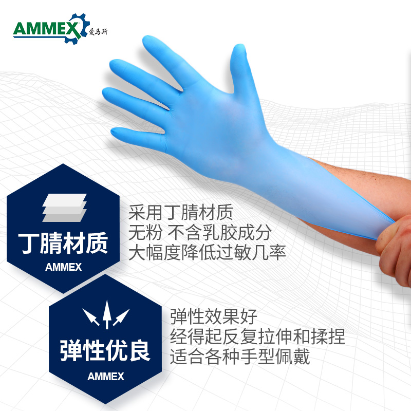 爱马斯耐用型丁腈一次性手套加厚食品餐饮丁晴橡乳胶实验室耐酸碱 - 合羽家居