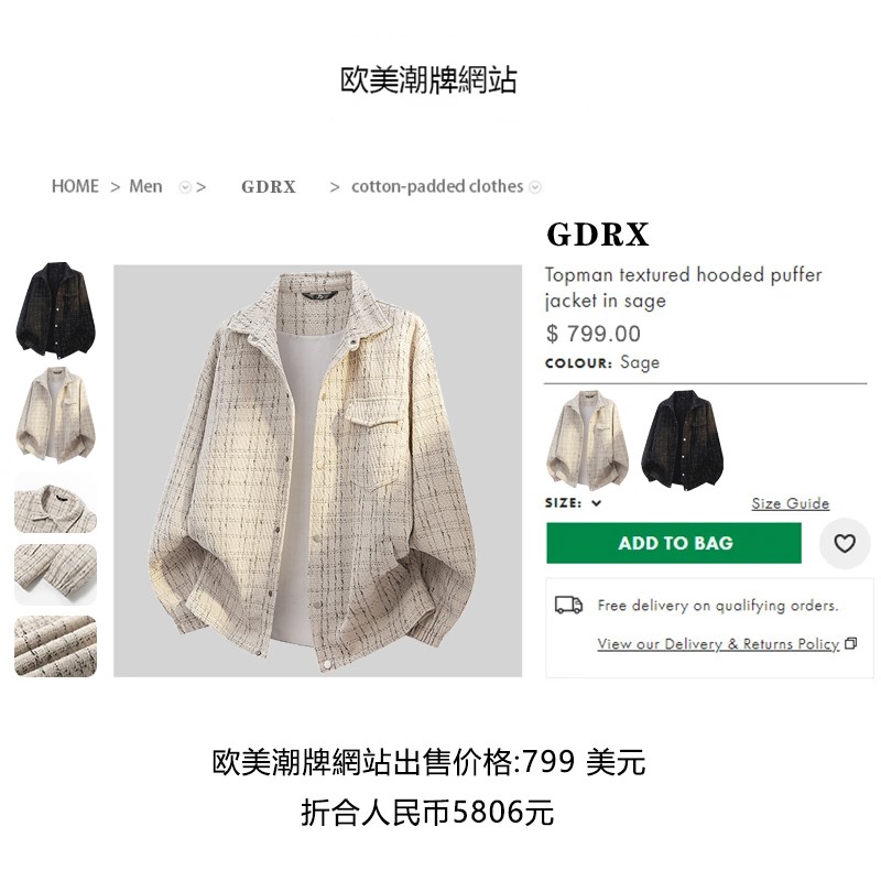 GDRX格子保暖防风男款夹克2025秋冬季小香风小众设计百搭宽松外套 - 品牌正品折扣专柜店