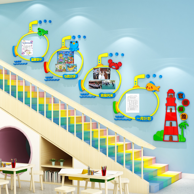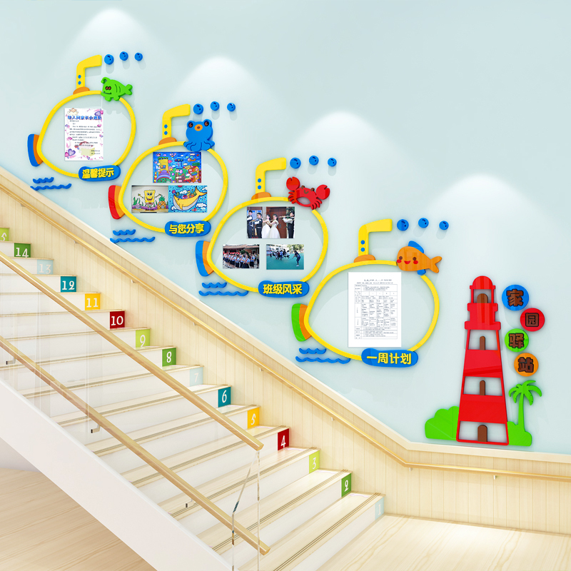 幼儿园楼梯走廊墙面装饰宣传栏公告栏环创材料学生风采展示主题墙