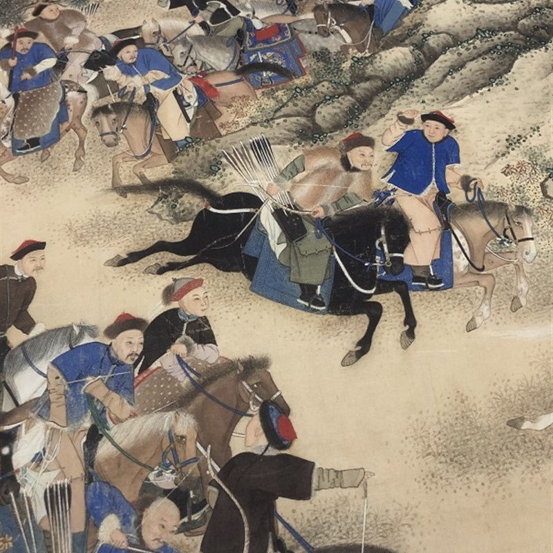 清 沈英围猎图 横幅装饰画I微喷复制学习临摹画稿