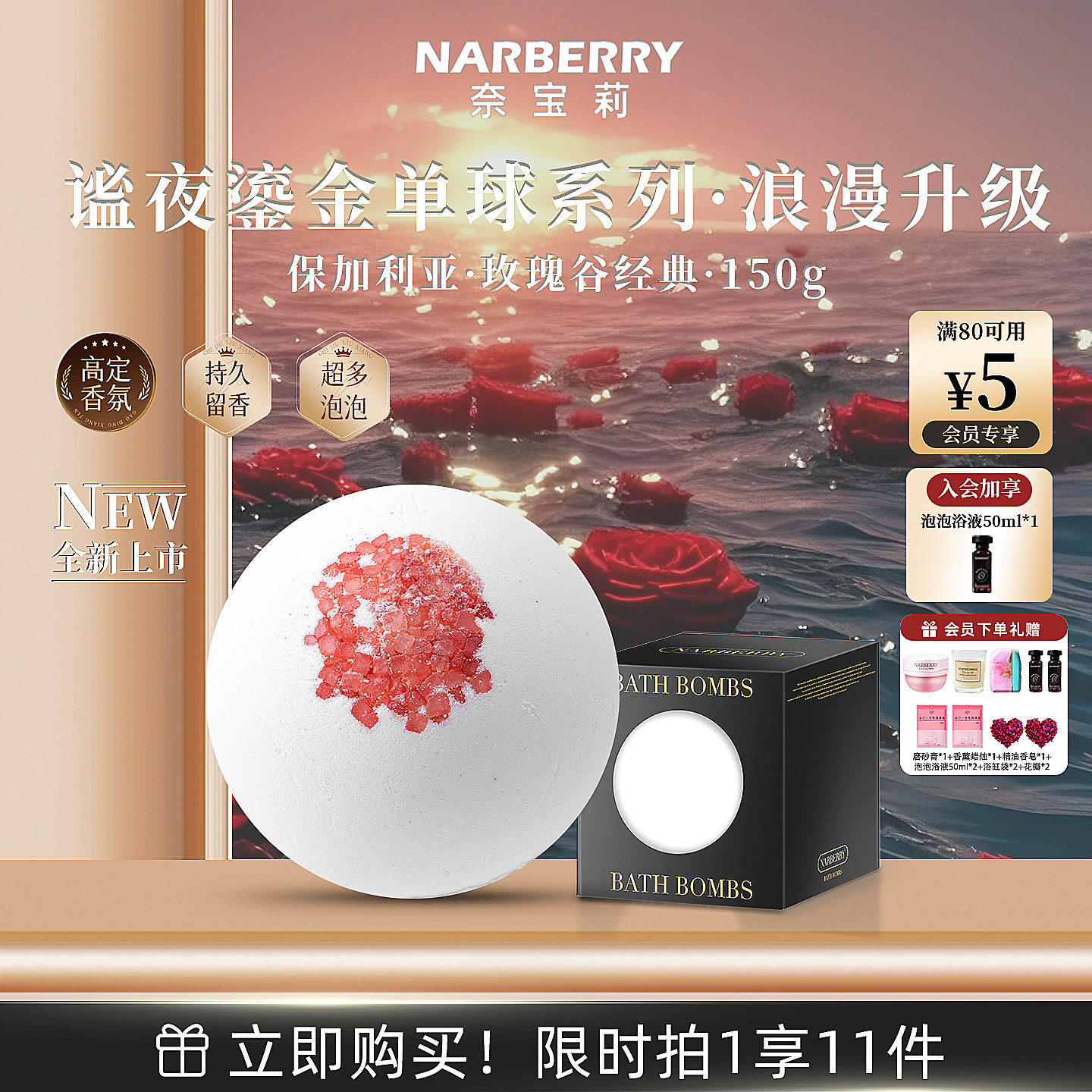 NARBERRY/奈宝莉泡澡球玫瑰花瓣牛奶泡泡浴缸精油成人沐浴海盐球