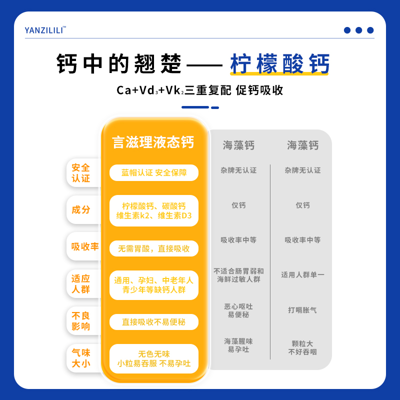 言滋理液体钙yzl胶囊vdvk维生素d维生素k青少年儿童孕妇中老年 - 言滋理品牌店