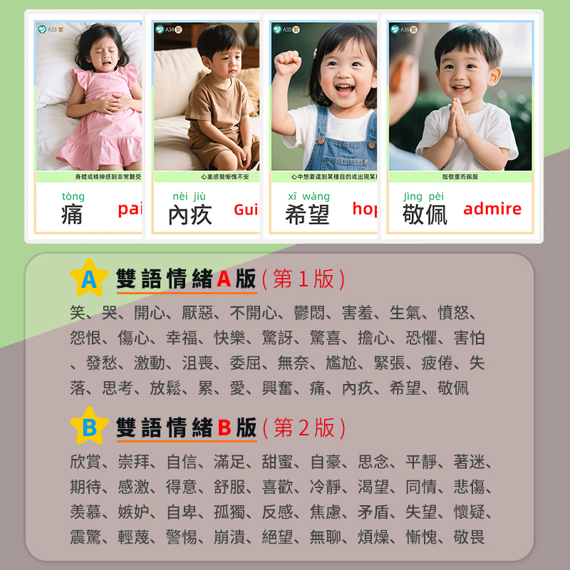 繁体版情緒認知卡片英文英語單詞閃卡表情臉譜圖兒童早教訓練教具 - 慧之星益智中心