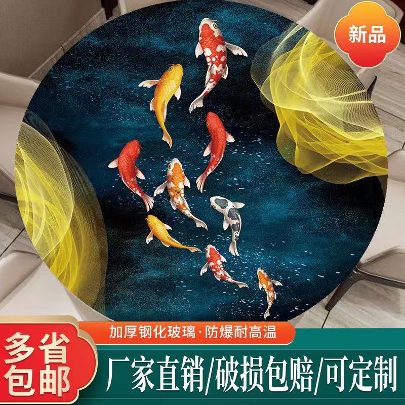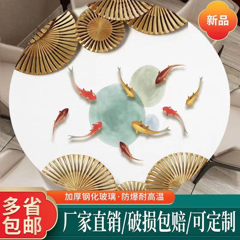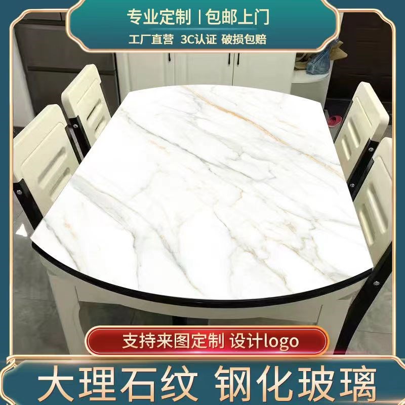 钢化玻璃大理石纹桌面餐桌茶几台面长方形圆形板玻璃定 - 海韵湖食府