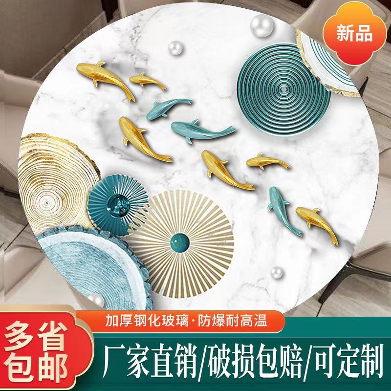 钢化玻璃大理石纹桌面餐桌茶几台面长方形圆形板玻璃定