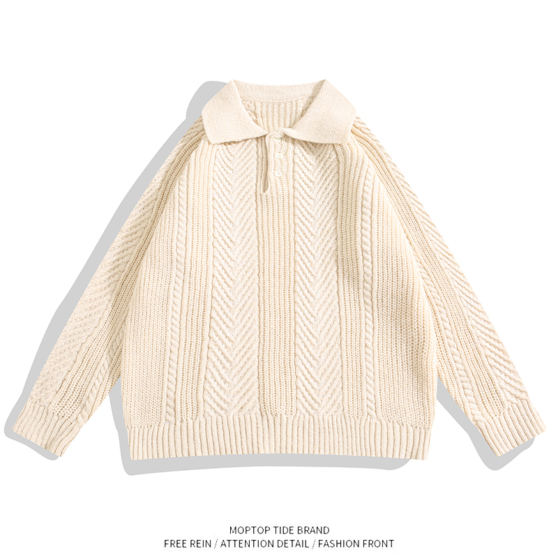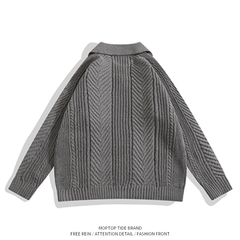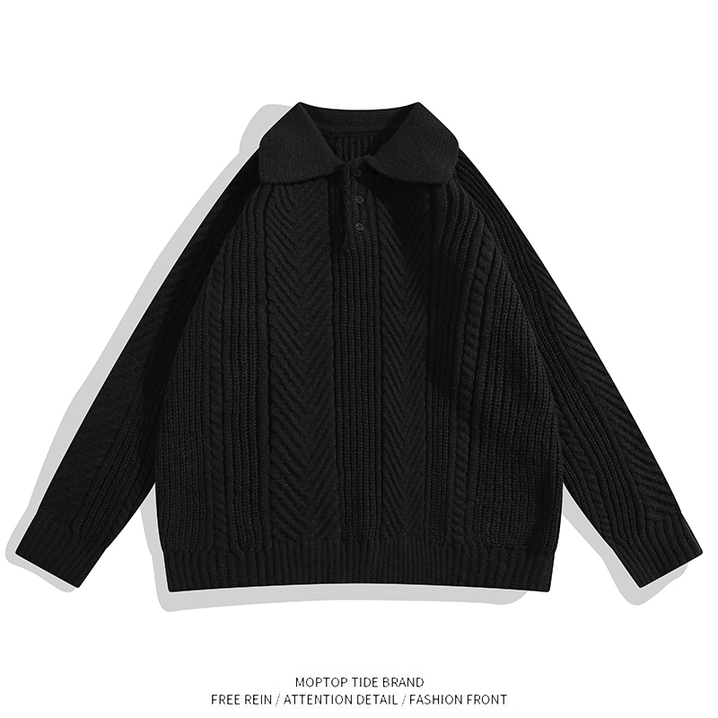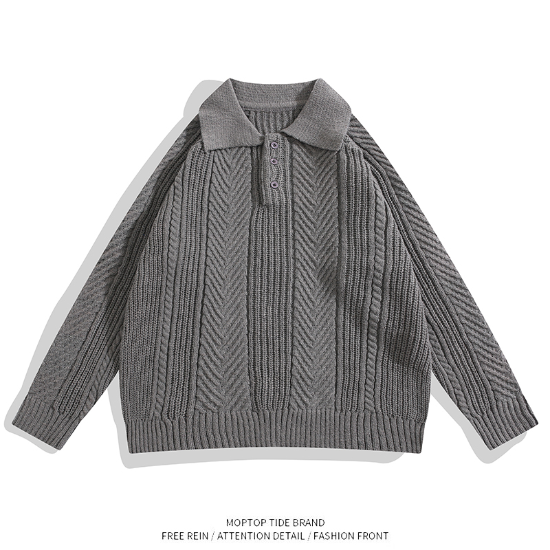 WHXS复古保暖提花纹理翻领毛衣纯色男士休闲落肩款套头针织POLO衫 - WH先生原创设计