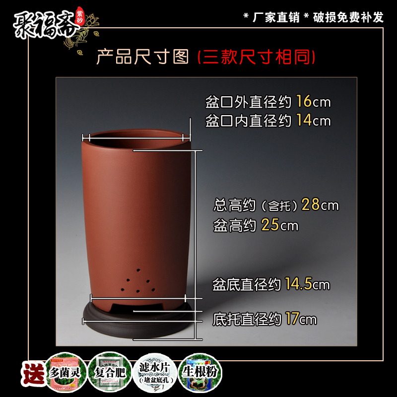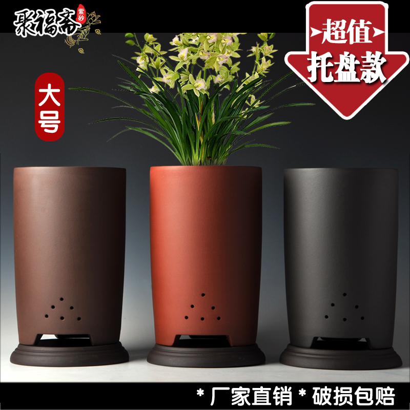 宜兴紫砂花盆 大号兰花盆高直筒透气盆景盆带托盘花盆特价清仓 - 聚福斋紫砂