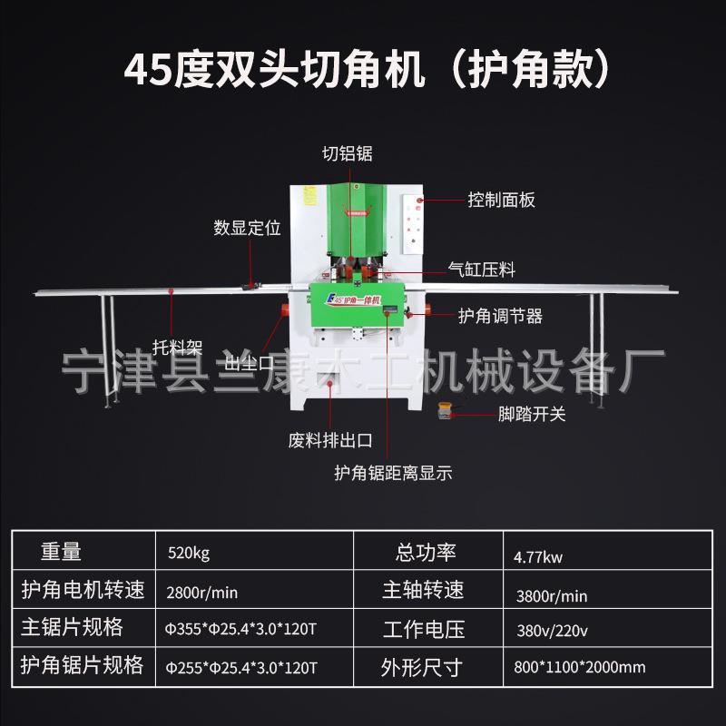 厂家供应设备铝合金切割机橱柜门窗型材导轨45度双头锯护角一体机
