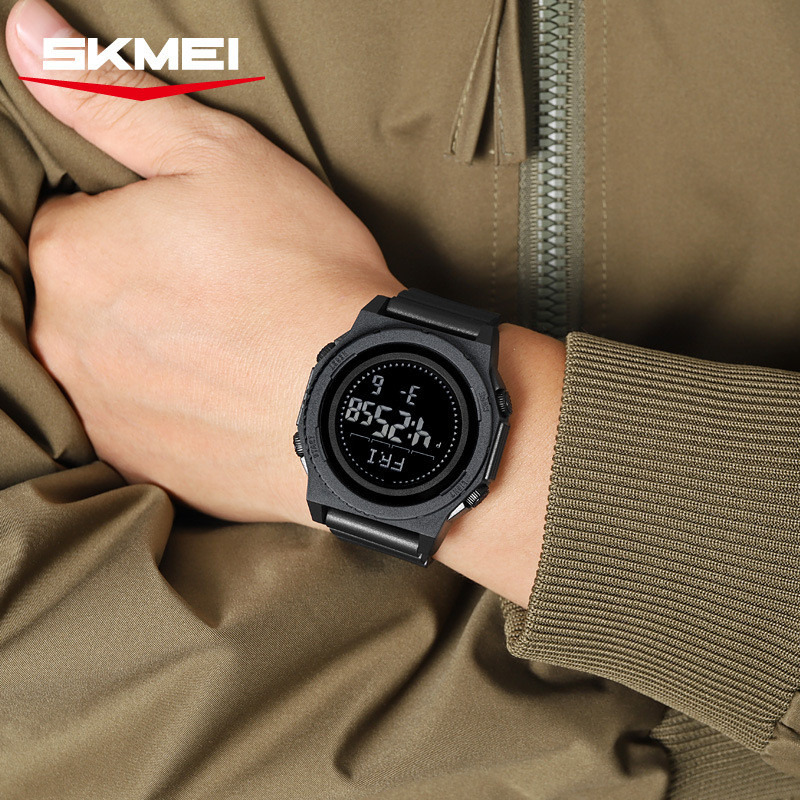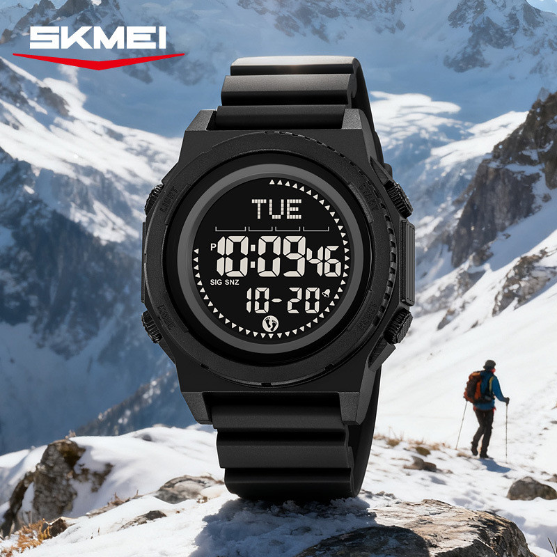 时刻美多功能指南针外贸电子表时尚青少年潮流运动计步计时手表