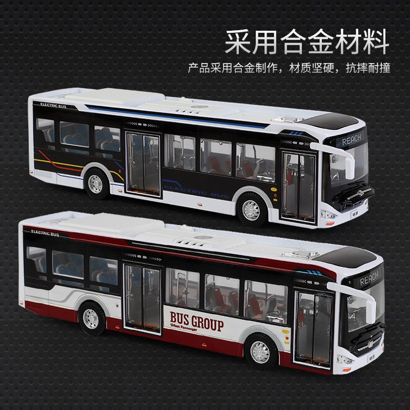 1:42b城市新能源客车公交车巴士观光车声光滑行合金车模型收藏摆