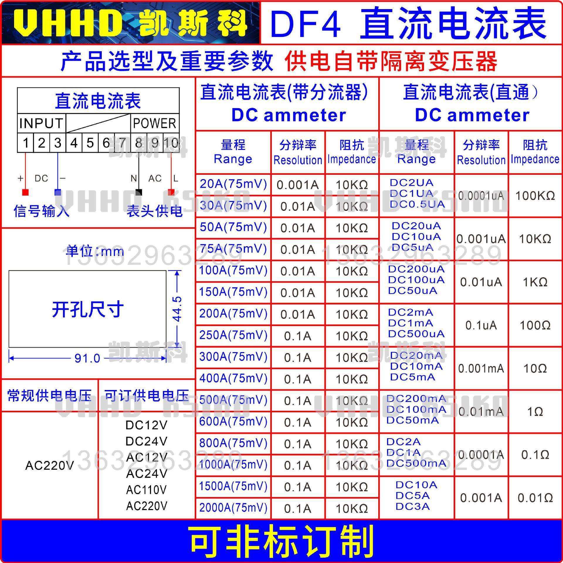 厂家直销VHHD DF4四位半数显盘面表电压电流电阻功率转速频率表
