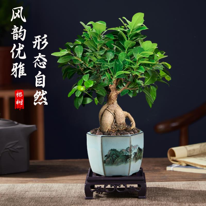 大榕树盆景办公室内桌面客厅绿植物花卉人参榕四季常青小榕树盆栽 - 云寒旗舰店