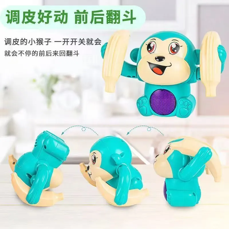 儿童翻滚猴电动声光婴儿玩具练习抬头爬行0到3岁小猴子玩具翻跟头